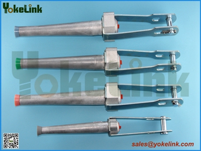 | Feature: | • Versatile for dead-ending ACSR, AAC and AAAC conductors •Breaking strength exceeds 95% of conductor’s rated strength, up to a maximum of 10,000 lbs. •Galvanized steel clevis pin and stainless steel cotter pin (included) enable deadend suspension insulators |